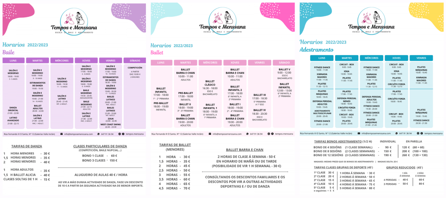 Consulta el precio de las clases de Tempos e Menssana para tu nivel.